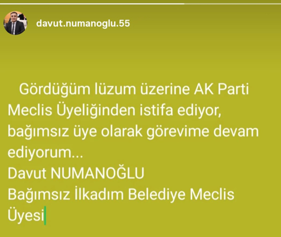 Samsun’da siyaset ve spor camiasını sarsan bir gelişme yaşandı. İlkadım Belediye Meclis Üyesi Davut Numanoğlu’nun AK Parti’den istifa ettiği öğrenildi.
