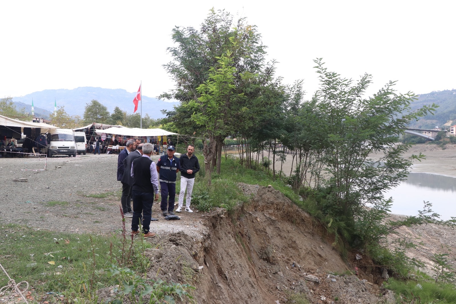 Suat Uğurlu Barajı’ndaki kapaklarda tadilat yapılması nedeniyle baraj gölünün suyu çekildi. Su seviyesinin düşmesinin ardından ilçemiz Orhangazi Mahallesi sahil kısmında heyelanlar ve yüzey çatlakları oluştu.
